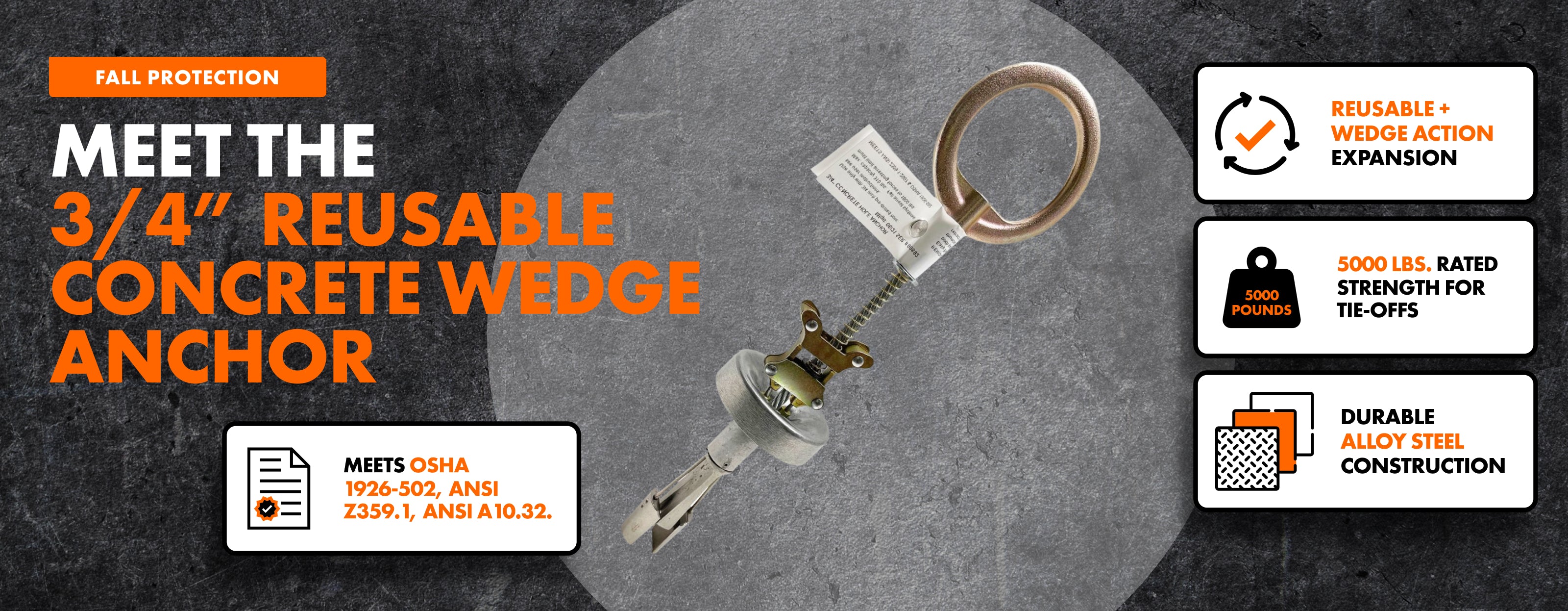 The 3/4″ reusable concrete wedge anchor delivers dependable anchorage for fall protection systems and positioning tie-offs, rated for up to 5,000 lbs. Its reusable design allows crews to install, remove, and re-install the anchor across multiple jobs, saving time, reducing waste, and minimizing concrete repairs. The wedge-action mechanism ensures a secure hold in concrete, while durable alloy steel construction provides long-term reliability. Perfect for temporary tie-off points, maintenance, inspections, and phased construction projects, this anchor combines strength, flexibility, and efficiency for modern jobsite safety.