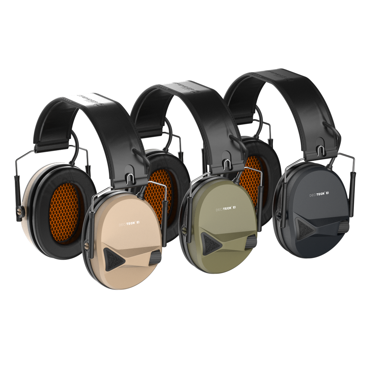 DECITECH™ E1 Active Electronic Hearing Protection, Over the Head Earmuffs
