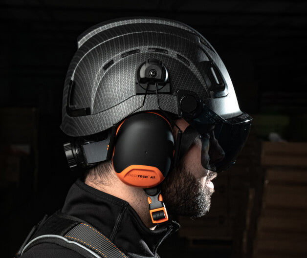 - Compatible with Decitech™ earmuffs and H2 visor kits for seamless job site performance.