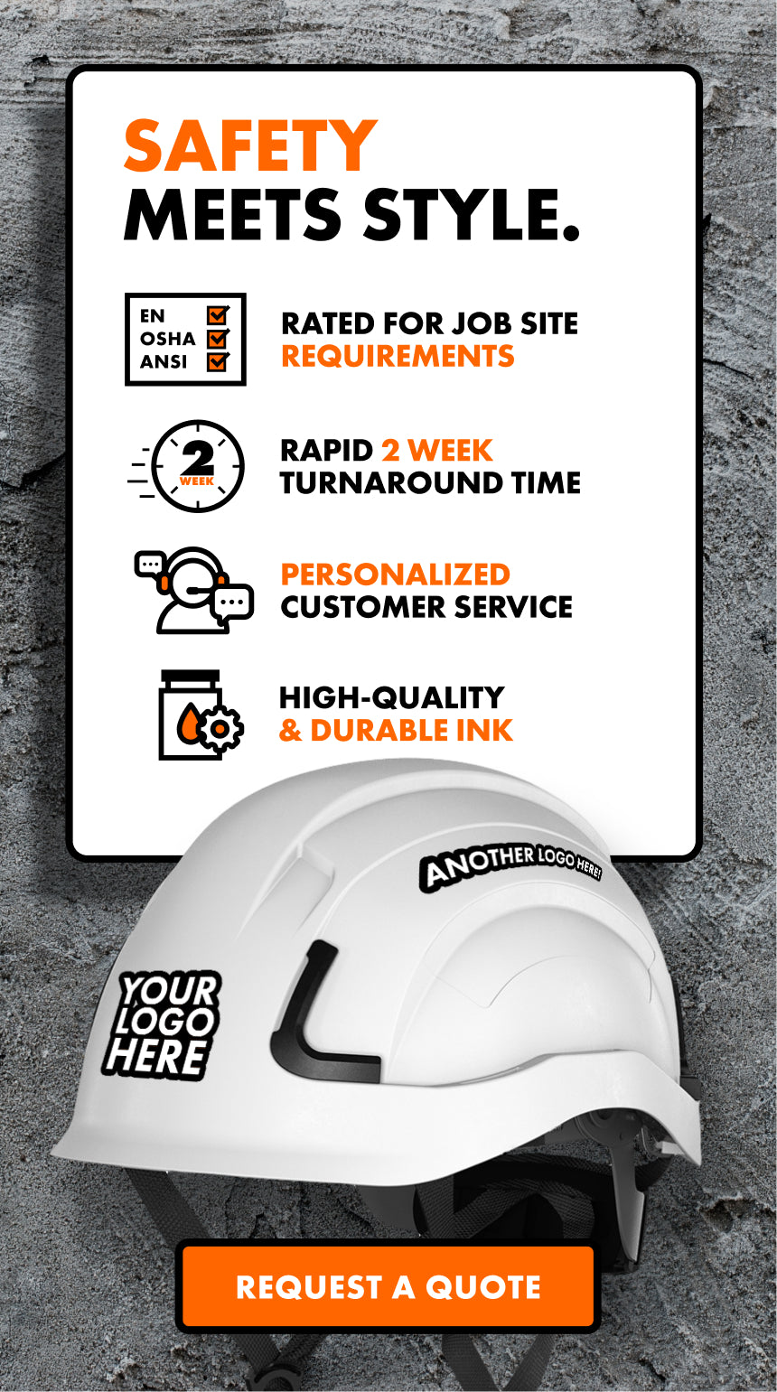 We understand the importance of having your helmets on brand with your Company’s requirements. That’s why we have a variety of colors and large printing areas to easily add company logos to your helmet with a short turnaround time.