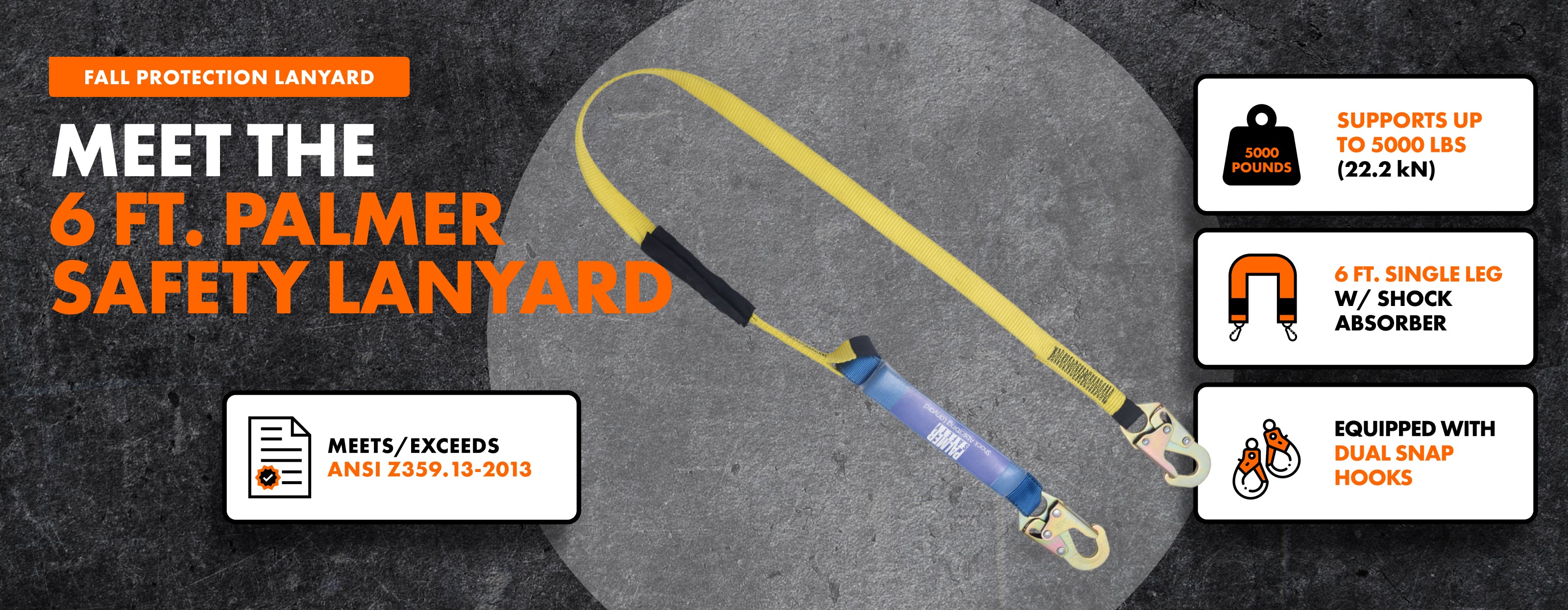 - Both ends of the lanyard equipped with steel snap hook.